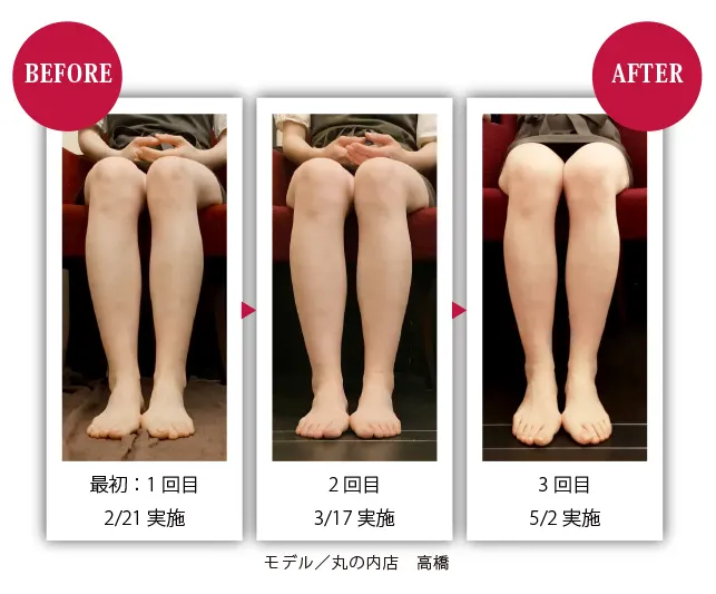 【スタッフ(丸の内店/高橋)が効果を体感!】1ヶ月に1回の施術ペースでも効果を実感できます![美脚と目力整体®]施術後は体全体、姿勢もきれいに整うので、座り方まで自然ときれいになって、ただ座るだけの無意識のしぐさまでも美しくなっていきます!