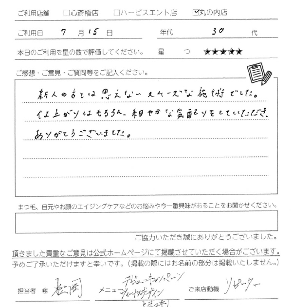 毎月たくさんのお客様にお声をいただき、スタッフ一同大変感謝いたしております。ありがとうございます。●10(420-381)