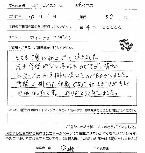 9月・10月に店頭で記載頂いたお声からピックUPしています。。 毎月たくさんのお客様にお声をいただき、スタッフ一同大変感謝いたしております。ありがとうございます。●13(515-501)