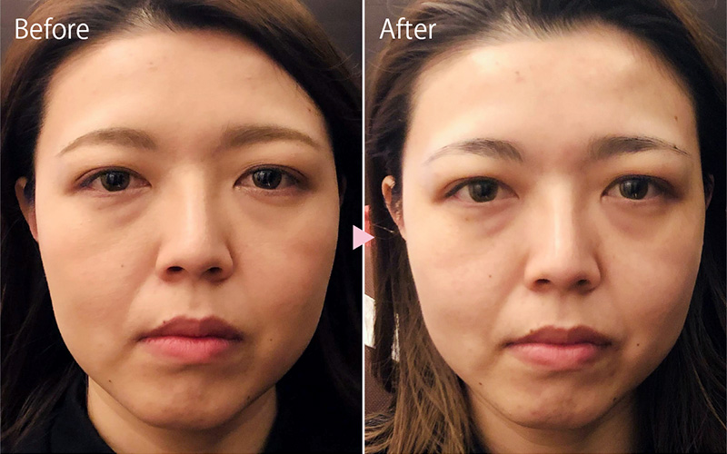 Afterの写真はノーメイクの素顔!肌に透明感がよみがえりました。フェイスラインも目元もスッキリ!むくみもとれて引き締まった美しいお顔立ちに☆
