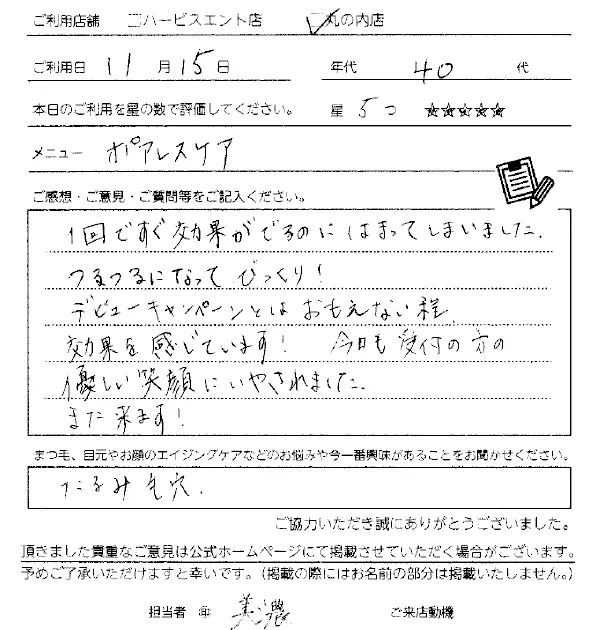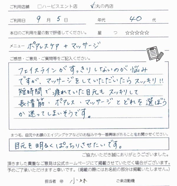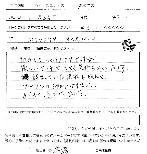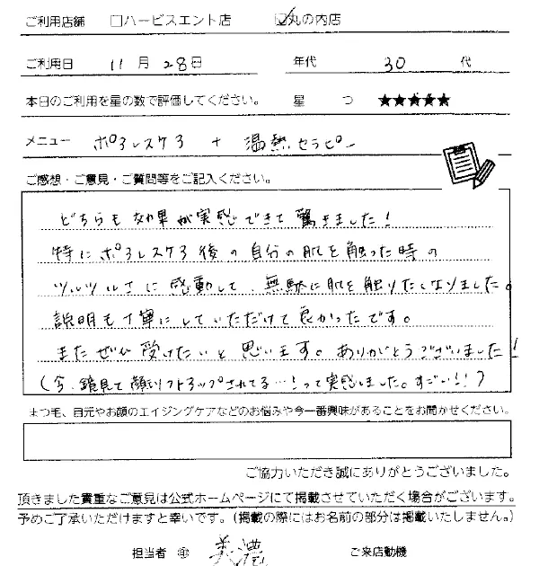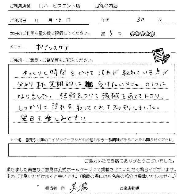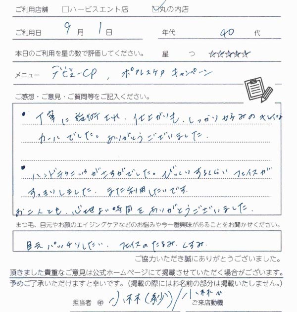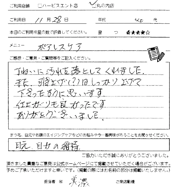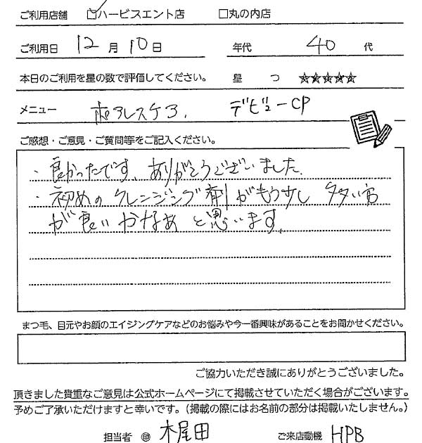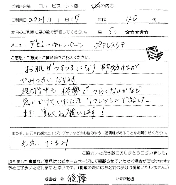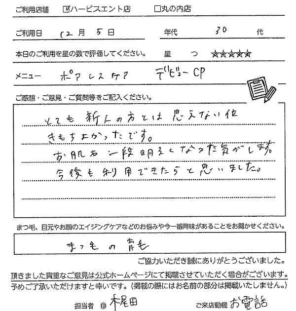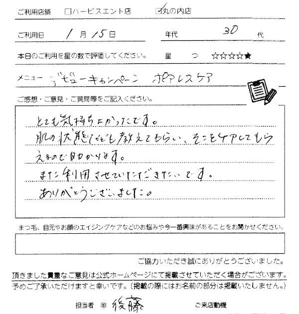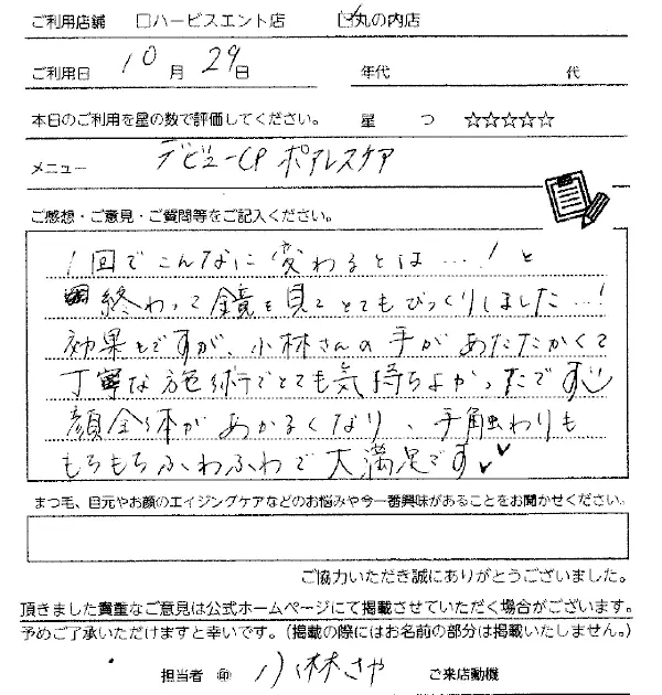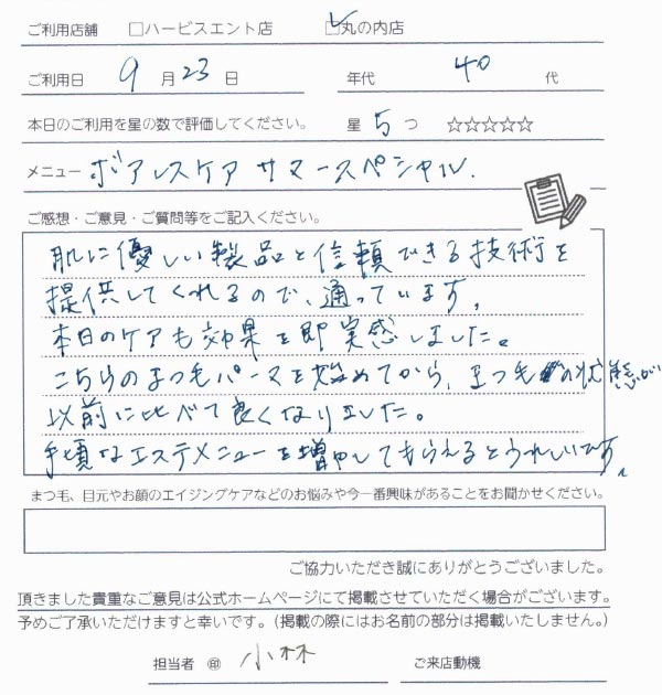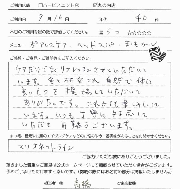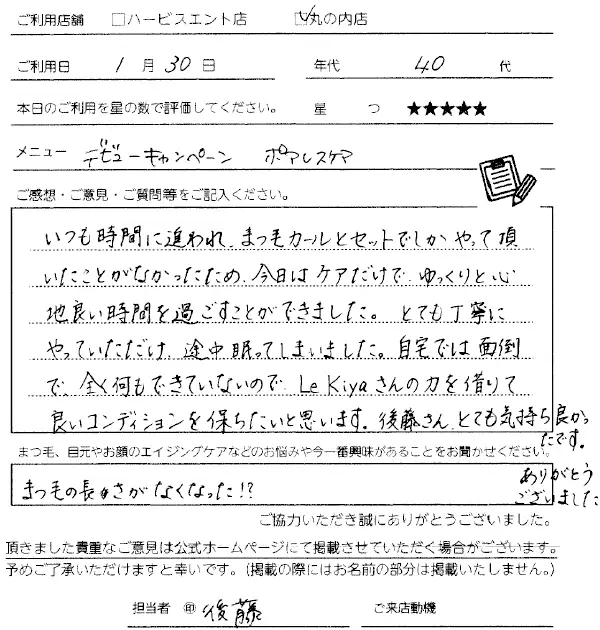 店頭で記載頂いたお声からピックUPして追加掲載いたしました。 毎月たくさんのお客様にお声をいただき、スタッフ一同大変感謝いたしております。ありがとうございます。