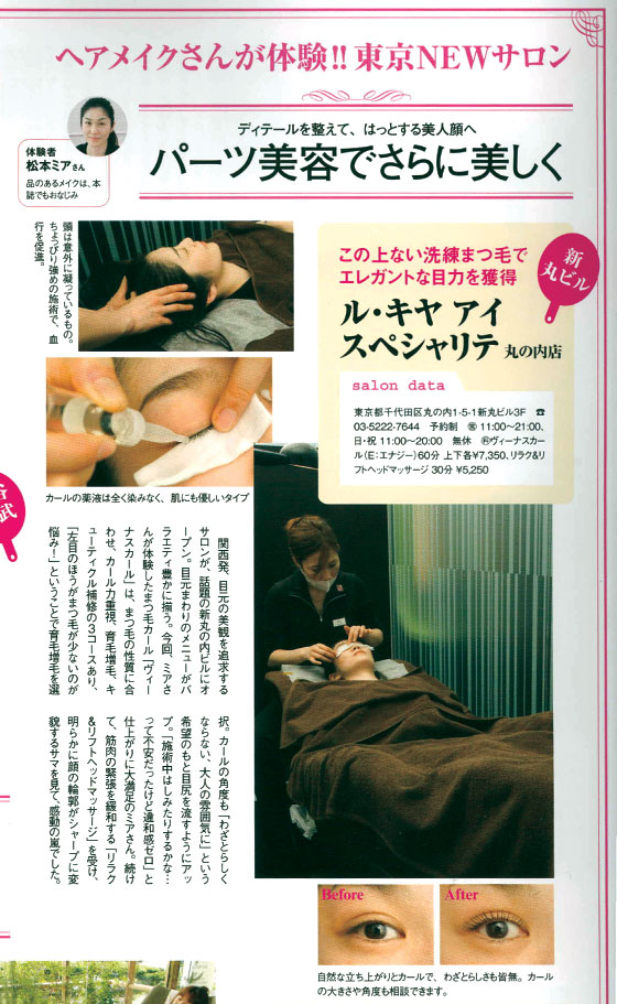 ◇Dear- 2008.01◇ 「メイク落としの摩擦やエクステで傷んでしまったまつ毛には「まつ毛デザイン」と育毛剤で蘇る」というタイトルでル・キヤが紹介されました。